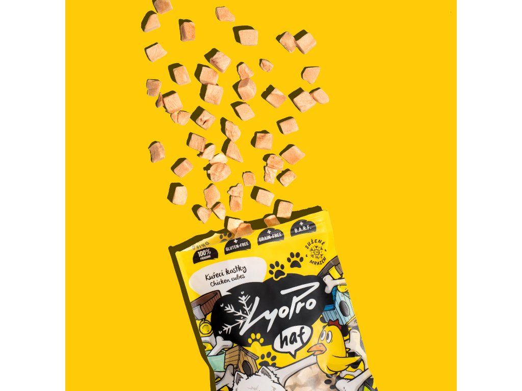 Mrazem sušené kuřecí kostky jsou 100% přírodní pamlsek bez tepelné úpravy. Díky šetrné lyofilizaci si maso zachovává maximum vitamínů, minerálů i přirozenou chuť. Lehké, výživné a ideální jako zdravá odměna nebo doplněk BARF stravy.